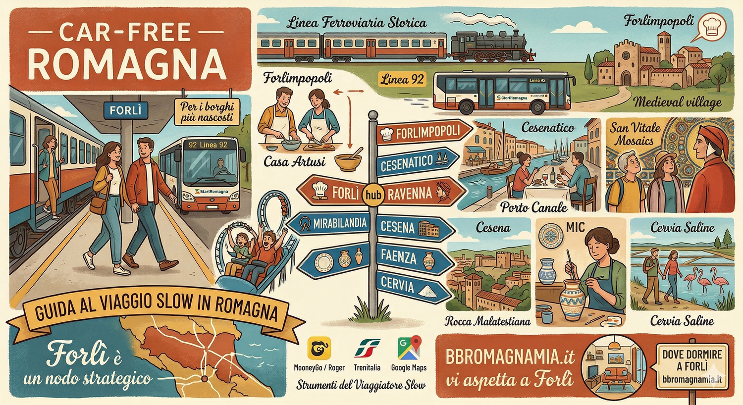 Diciamoci la verità: l’idea di infilarsi nel traffico, cercare parcheggio sotto il sole o decifrare i varchi della ZTL non è esattamente l’idea di "vacanza relax". Spesso i nostri ospiti ci chiedono: "Ma se venissi in treno, riuscirei a vedere le bellezze della Romagna?".